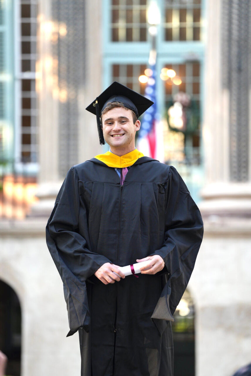 Dylan McGuire, president of the Graduate Student Association, spoke to his peers about how environmental science shaped his understanding of resilience, not only in urban planning but also in navigating life’s challenges.