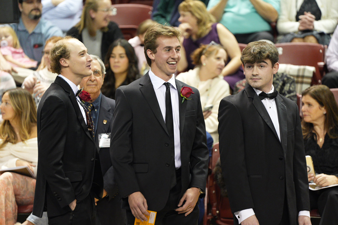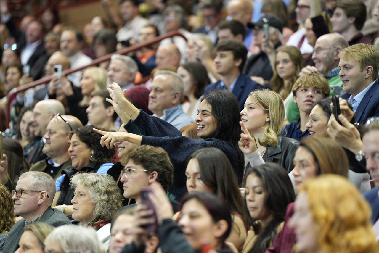 Laurie Minges ’83, president of the Alumni Association, welcomed the Class of 2025 to join the association’s more than 105,000 members. She invited graduates to turn their rings so the seal faces out, indicating their new status as alumni of the College.