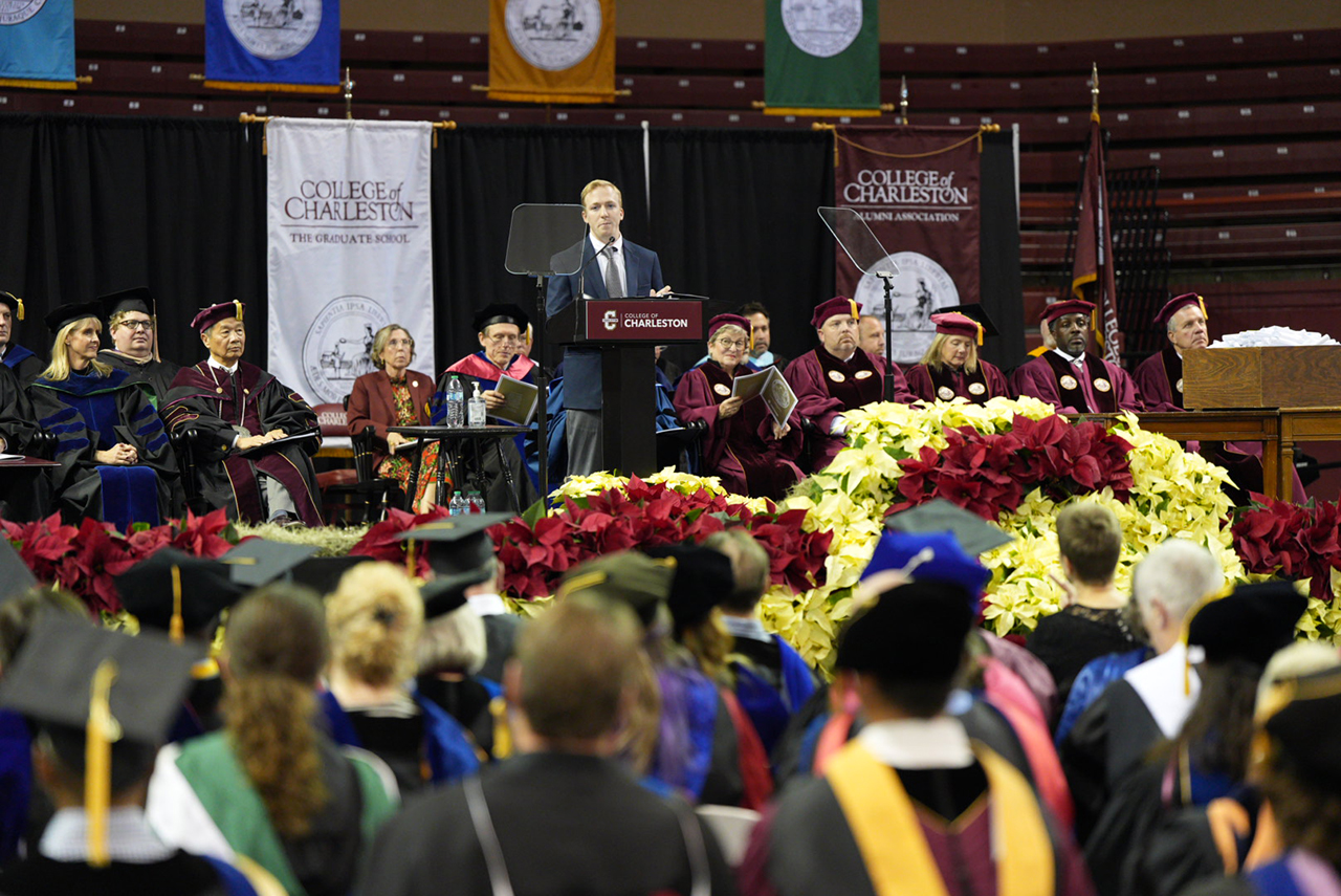 College of Charleston President Andrew T. Hsu welcomed the undergraduate and graduate students to the ceremony with a meaningful reminder that they make up a remarkable class shaped by extraordinary times.
